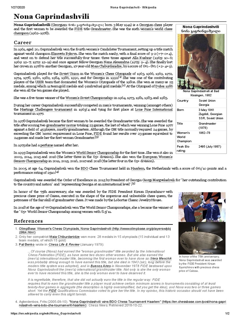 Ich der Urheber dieses Werkes veröffentliche es unter der folgenden Lizenz. You will find all the basic Information about Nona Gaprindashvili. Checkout Nona Wiki Age Biography Career Height Weight Family.