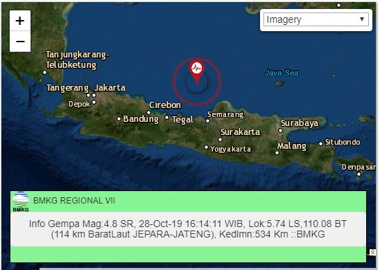 Bmkg Jateng Jatenggayeng Auf Twitter Info Gempa Mag 4 8 Sr 28 Oct 19 16 14 11 Wib Lok 5 74 Ls 110 08 Bt 114 Km Baratlaut Jepara Jateng Kedlmn 534 Km Bmkg Pgr Vii Https T Co Lmwvuadzho