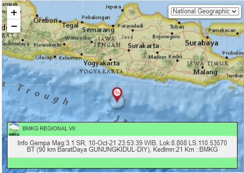 Berdasarkan data Badan Meteorologi Klimatologi dan Geofisika BMKG seperti diunggah akun twitter bmkg_semarang diketahui lokasi gempa berada 856 LS108895 BT. Selasa 12 Oktober 2021. Menurut BMKG belum ada metode yang secara akurat memprediksi kapan terjadi gempa.