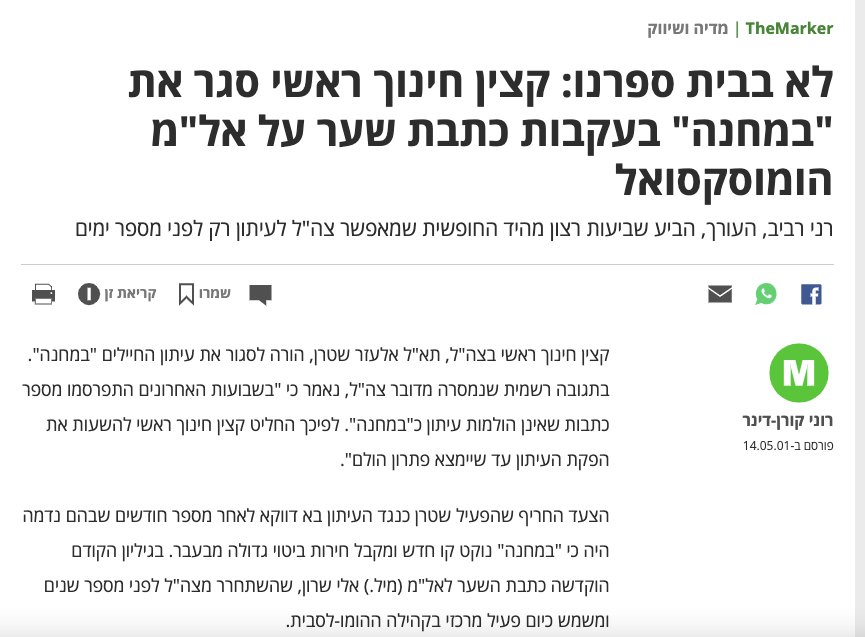 התסריט הדמיוני להפלת הממשלה. אם רוצים לדאוג שהיחס 14 לא יגדל אז צריך לומר בצורה ברורה שזה לא רק אתגר של הצבא אלא קודם כל של המדינה והחברה. בהודעתו הסביר כי ההחלטה באה בעקבות הסערה שנוצרה מהודאתו בריאיון ב-103FM בגריסת תלונות אנונימיות כשהיה ראש אגף.
